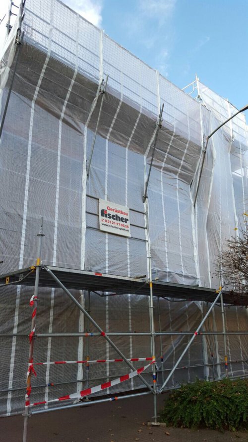 Inkl. kompletter Gerüstbekleidung mit einer Gewebeplane in B! (schwer entflammbar)